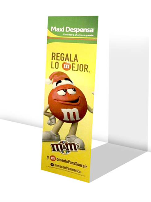 Impresión en vinil, lona, adhesivo, backlight y materiales POP para supermercados, vitrinas y eventos.